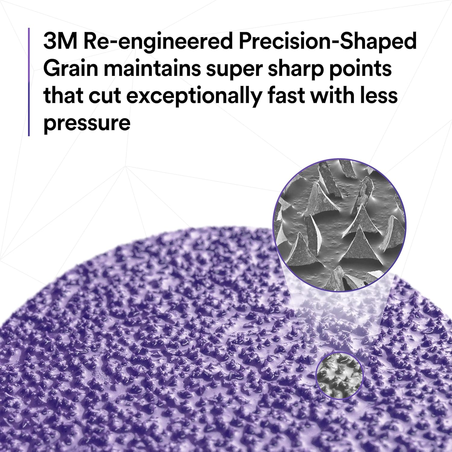 The 3M™ Cubitron™ 3 Fibre Disc 1187C features re-engineered 3M Precision Shaped Grain — taking the legendary speed and life of 3M™ Cubitron™ Performance Abrasives to a whole new level. These product benefits include allowing for increased productivity and lower overall grinding costs vs. other fiber discs and depressed center grinding wheels when grinding a variety of metals, including stainless steel and other heat-sensitive alloys. Delivering up to 56% more total material removed compared to the 3M™ Cubitron™ II Fibre Disc 987C, 36+, this long-lasting fibre disc has a fast cut rate with high stock removal across a wide range of application pressures; it also features a grinding aid that minimizes temperatures for heat-sensitive alloys. Additionally, this disc is designed to help reduce exposure to hand-arm vibration, increase throughput, and complete more parts-per-disc when tackling medium to high-pressure grinding applications.