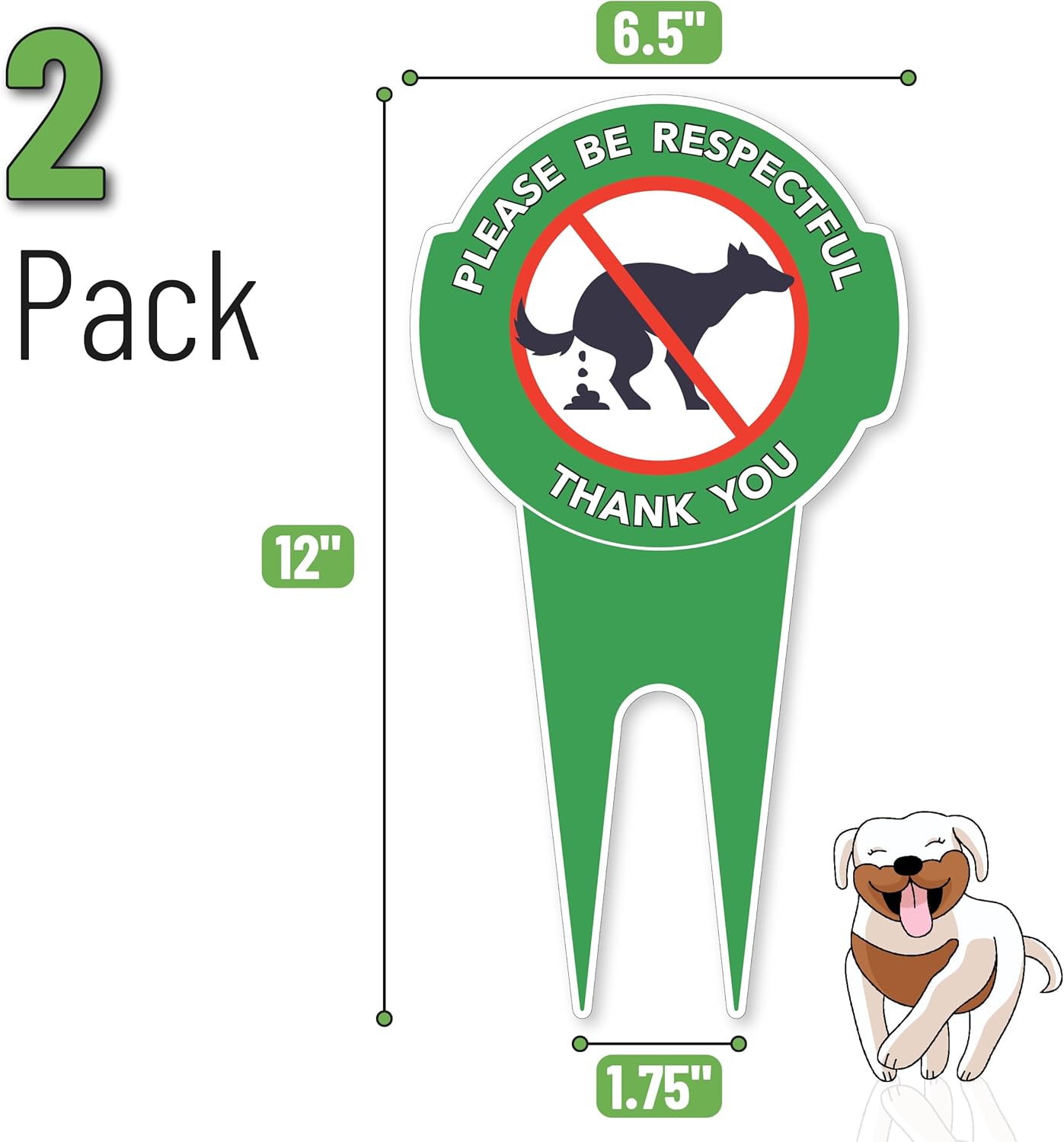 Mr. Pen no dog poop signs for yard come in a 2 pack and offer a polite yet clear way to maintain cleanliness and respect on your property.Constructed from high-quality aluminum, these signs are rust-resistant and built to endure harsh outdoor elements year-round.Each sign measures 12" x 6.5" and features an integrated stake for quick, hassle-free installation in lawns, gardens, or soil.The bold graphic design is both weatherproof and fade-resistant, ensuring long-lasting visibility in sun, rain, or snow.Ideal for residential neighborhoods, business fronts, or public green spaces, these signs help promote responsible pet behavior with a courteous tone.